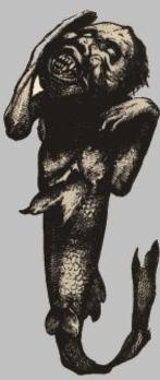 This brings me back the description of the ever infamous Mermaid. Depending on the region, mermaid descriptions differ, but Christopher Columbus and countless others never described the beautiful sirens of Greek mythology. In fact the only reason the dugong explanation persists is because Mermaids are often described as black-eyed, noseless...with fish-lips, no ears and seaweed for hair. Their teeth are like that of a sharks and their nails like talons...and they are said to bark.