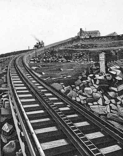 Figure 1 It is important to note that these patterns are on a small scale, as evidenced especially in photos #9, #16, and #6. Photograph #6 is entitled, Lizzie Bourne's Monument, Railway Beyond (Fig.1) Even with this respectively descriptive title, there's a sense of ambiguous scale. However, in looking to find out what Lizzie Bourne's monument actually is, it appears to be a common grave marker surrounded by stones (Fig 2.) Accordingly, If Fig.1 shows a common gravestone set upon some stones, then we can get a sense of scale.