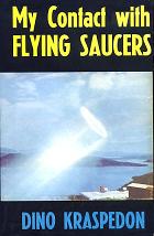 Browsing through the used book section at the neighborhood St. Vincent de Paul's the other day, I naturally went straight to where the UFO books are kept. I could count on finding some UFO books in the loosely defined New Age section. That day I didn't see any UFO books; not one. The New Age section is right next to the religious section. But no UFO books. Then I remembered; they didn't usually keep the UFO books in the New Age section, they kept it in the science section! Which I think is pretty cool, but unusual. So I go looking for that section; couldn't find it. A clerk told me the science section is under the label "education," which I found a bit odd. Why not just a science section? Science is certainly educational, but it isn't education, if you get me. But I was rewarded; there, taking up two whole shelves and more, were UFO books! Right there with books on astronomy and astro physics, regular old physics, books about space travel and books about aviation and mechanics. Fantastic! Lots of paperback books on UFOs, Strieber's books of course, and sets, like the ones Readers Digest puts out. I found a hardcover of Jenny Randles The UFO Conspiracy, which was fine. But the "Very Cool Bookstore Find" however was the hardcover edition of My Contact with Flying Saucers, by Dino Kraspedon.